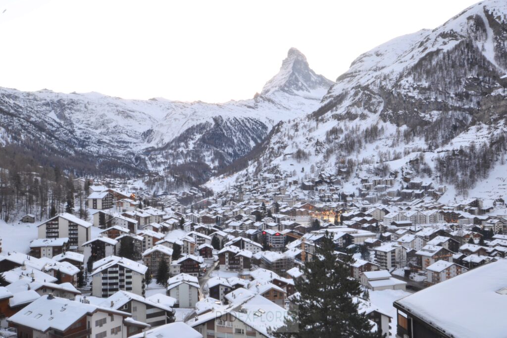 St. Mauritius Church’s interior showcased exquisitely carved wooden accents and told the town’s history through religious art, blending history and artistry. It provided a sense of solace and reflection, contrasting with the brisk winter air outside. We paused to admire the church’s timeless beauty, recognizing its cultural and historical importance to Zermatt. Amidst nature’s grandeur, the town’s spiritual core embodies tradition and serenity, a reminder found in this visit. We ended our walk around Zermatt with a short hike to Zermatt Matterhorn Viewpoint.