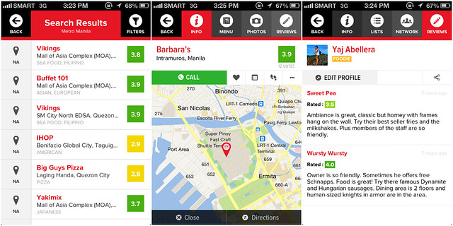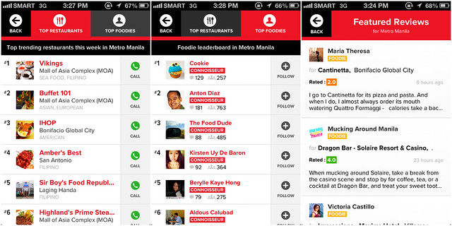 The application also ranks the Top 25 Trending restaurants for a specific week on your location. By tapping the call icon on the application, it will automatically connect you to the line of the restaurant without searching their contact numbers. Aside from top restaurants, it also presents the leaderboard of foodies in your area. You can also view some featured reviews for the week.